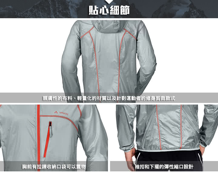 【VAUDE德國原廠】男款輕量彈性透氣超薄抗風外套(機車族-上班-運動-健身房 VA-06961-16 銀灰)還有哪些類似商品